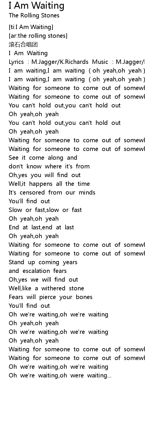 | [00:07.77] | I am waiting, I am waiting oh yeah, oh yeah |