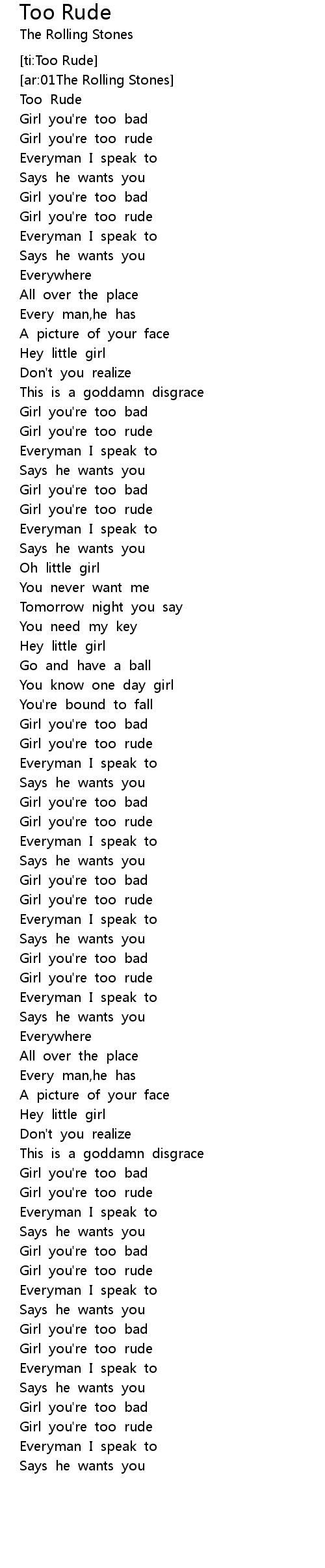 [ti:Too Rude] |