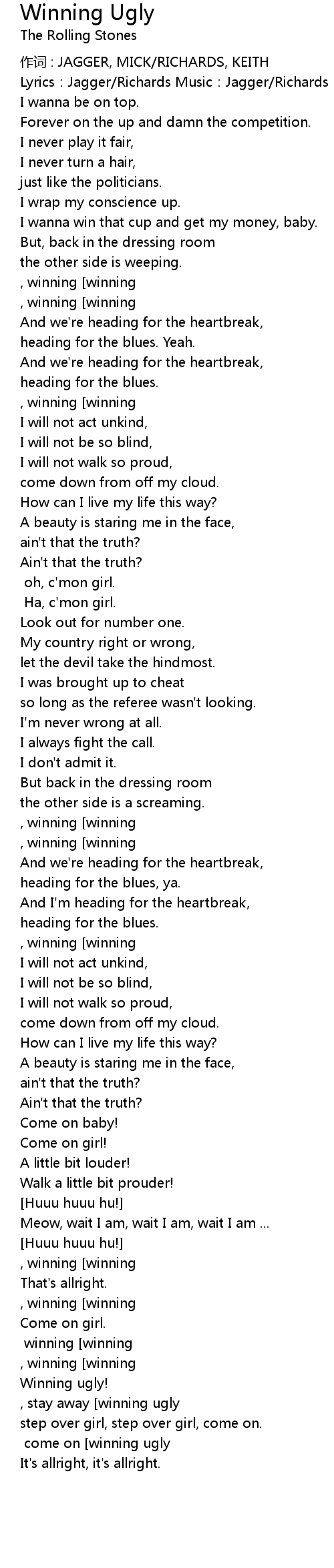 | Ah, and I'm winning [winning], winning [winning] winning ugly. | |