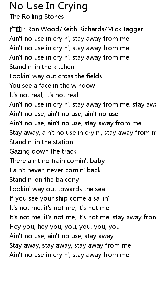 | Ain't no use in cryin', stay away from me, stay away | |