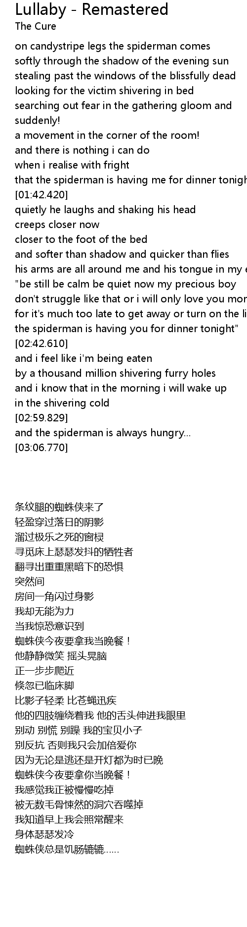 | [02:37.610] | the spiderman is having you for dinner tonight" |