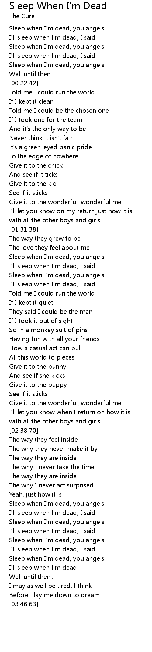Sleep when I'm dead, you angels |