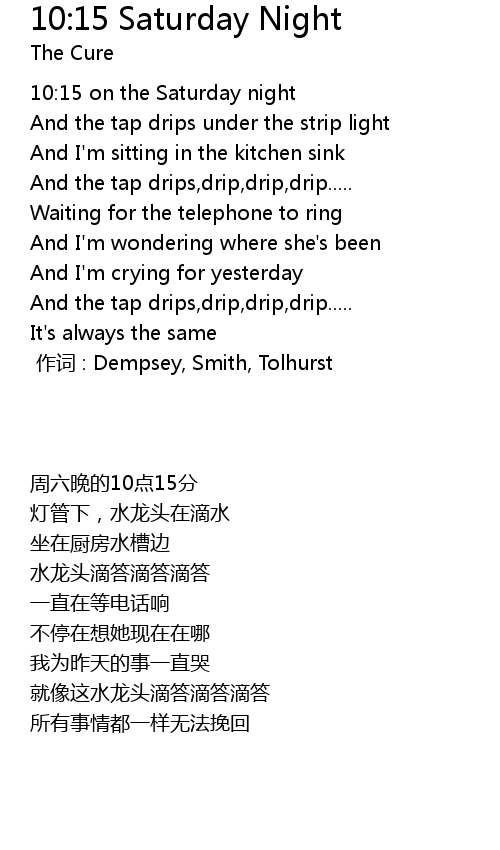 | [00:00.00] | zuo ci : Dempsey, Smith, Tolhurst |