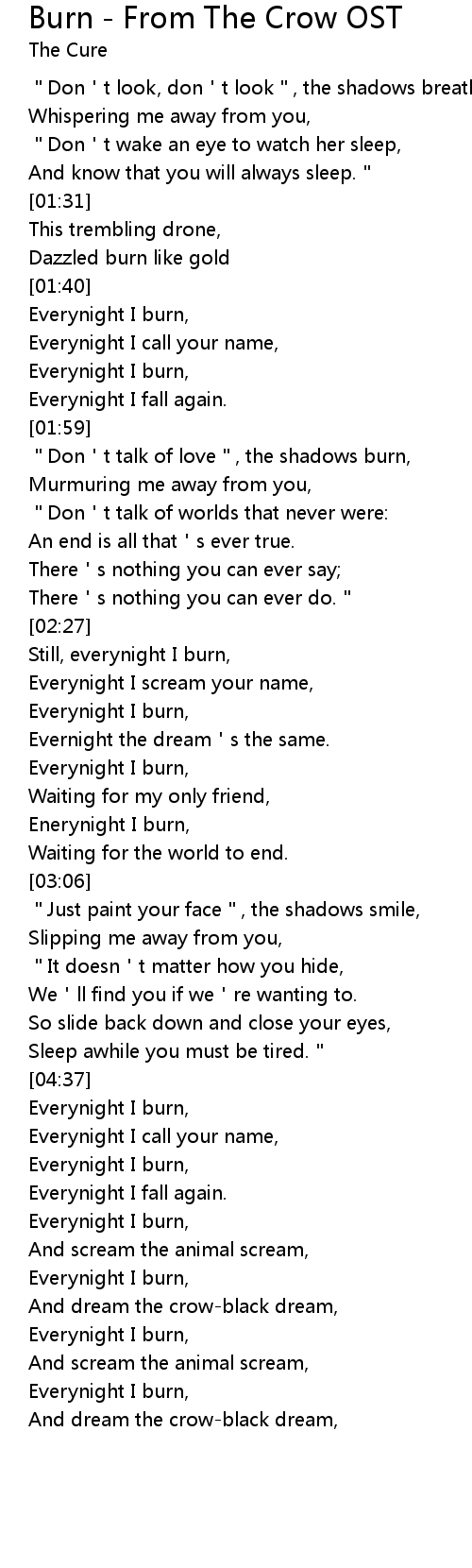 | [01:43] | Everynight I burn, |