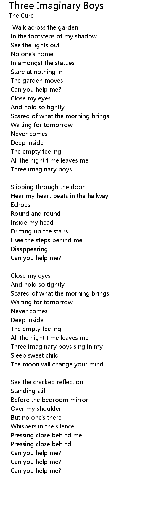 Three imaginary boys sing in my |
