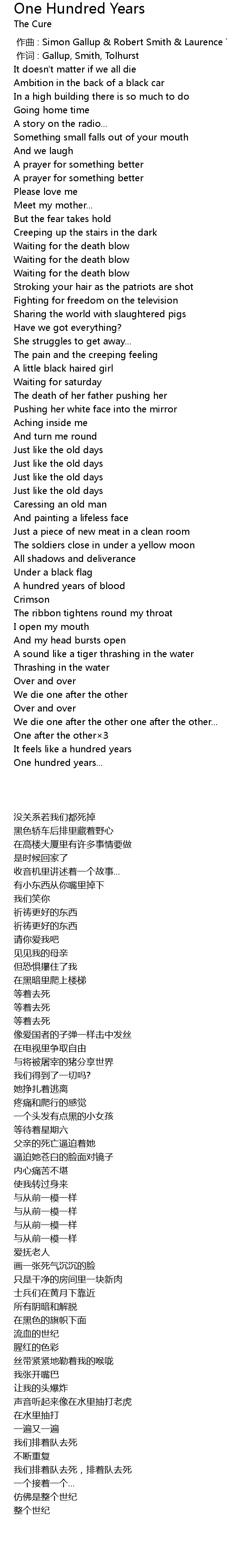 | [00:00.00] | zuo qu : Simon Gallup Robert Smith Laurence Tolhurst |