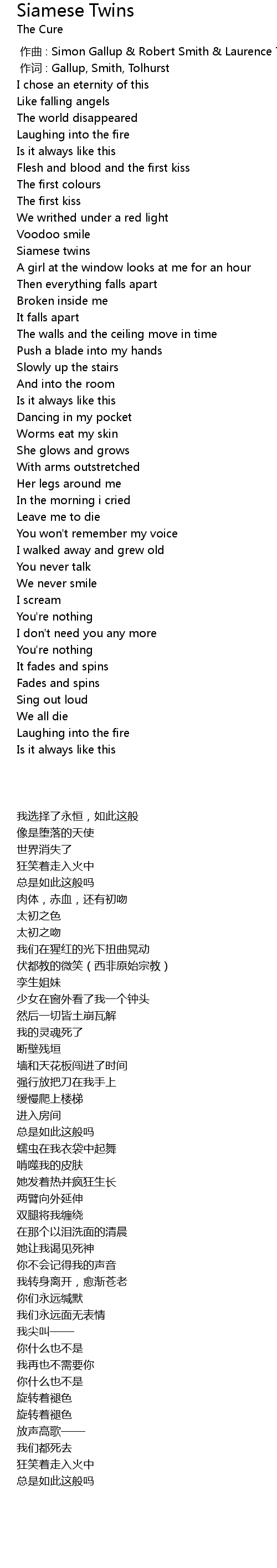 | [00:00.00] | zuo qu : Simon Gallup Robert Smith Laurence Tolhurst |