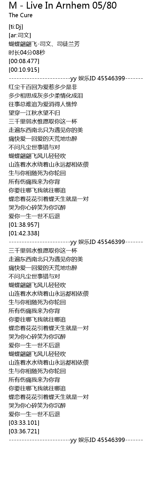 | [01:46.569] | ------------------------yy 娱乐ID 45546399--------------------- |