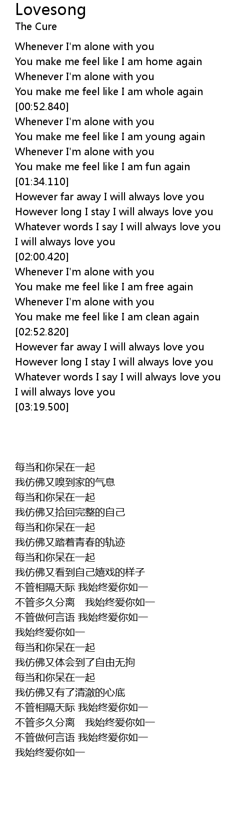 However far away I will always love you |