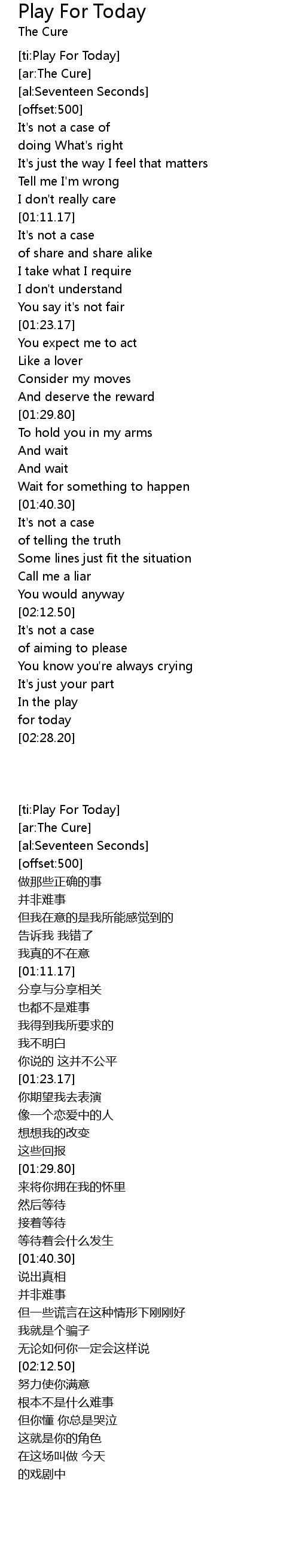 [ti:Play For Today] |