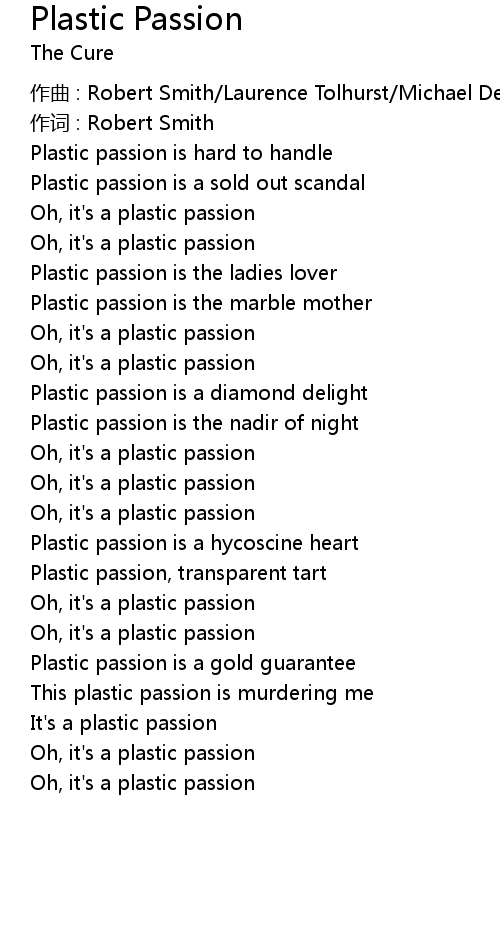 | This plastic passion is murdering me | |