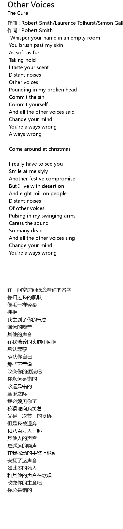| 作词 : Robert Smith | |
