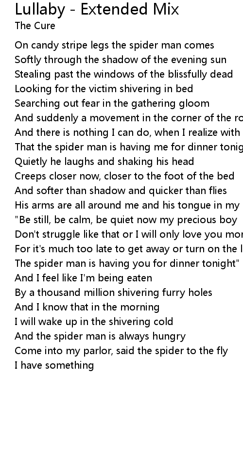 | On candy stripe legs the spider man comes | |