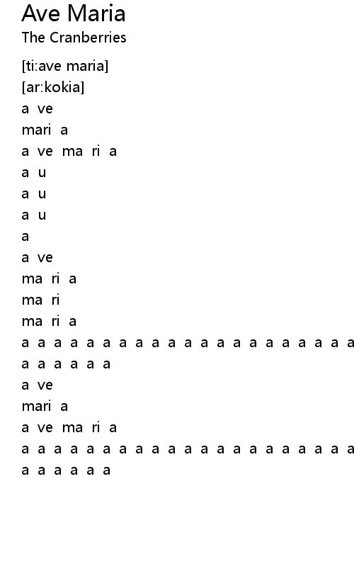 | [01:06.386] | a ve ma ri a |