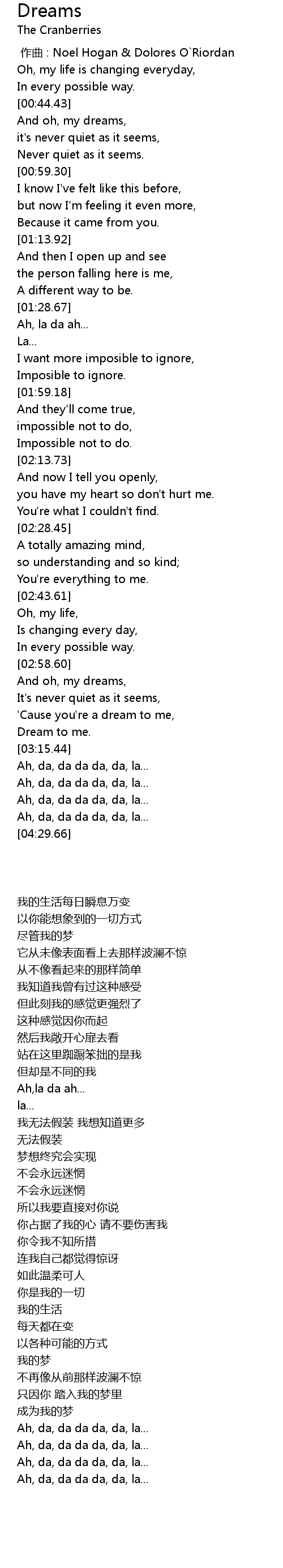 | [00:00.00] | zuo qu : Noel Hogan Dolores O Riordan |