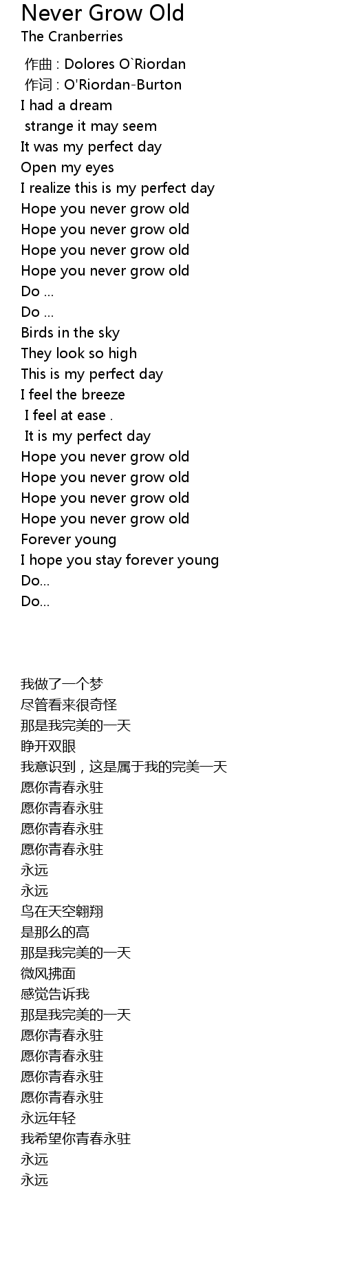 | [00:00.00] | 作曲 : Dolores O`Riordan |