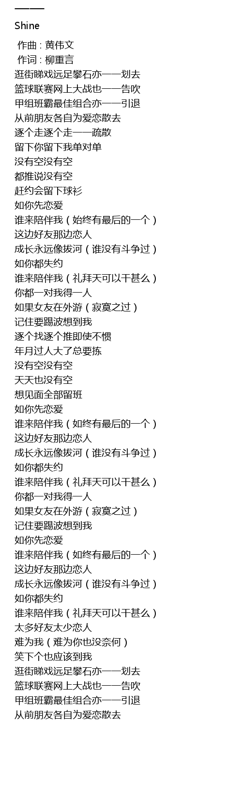 | [00:12.51] | 逛街睇戏远足攀石亦一一划去 |