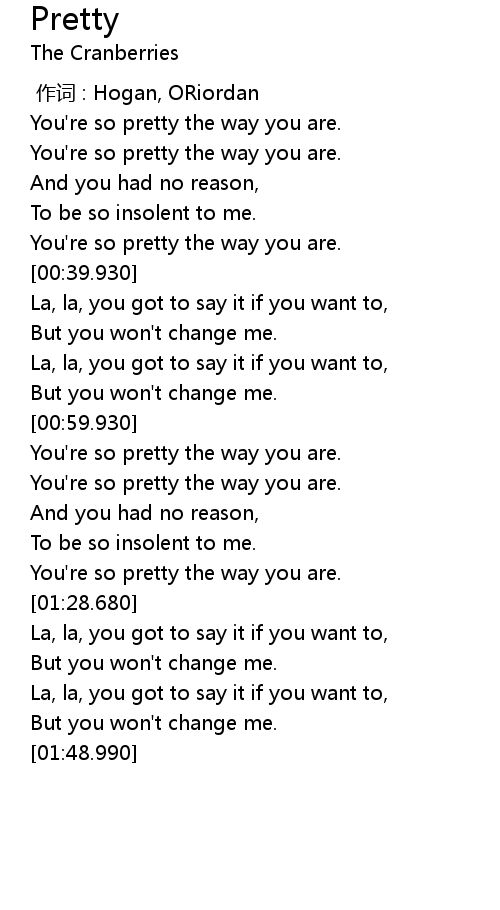 | [00:20.700] | You' re so pretty the way you are. |