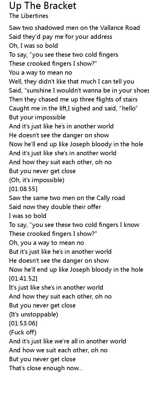 | [01:23.57] | To say, "you see these two cold fingers I know |