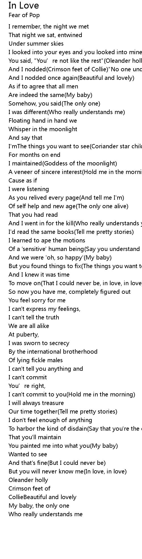 | But you will never know me In love, in love | |
