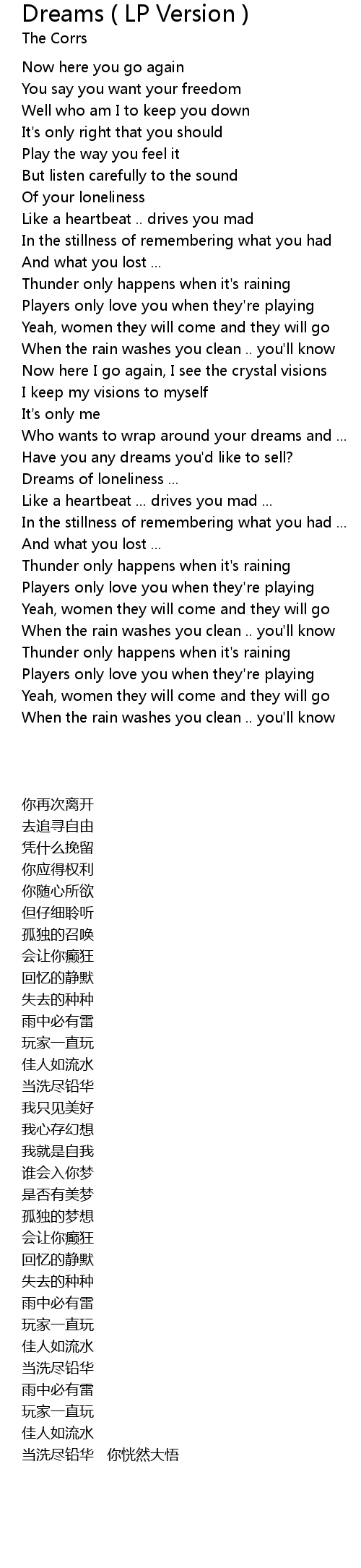 Dreams ( LP Version ) Lyrics