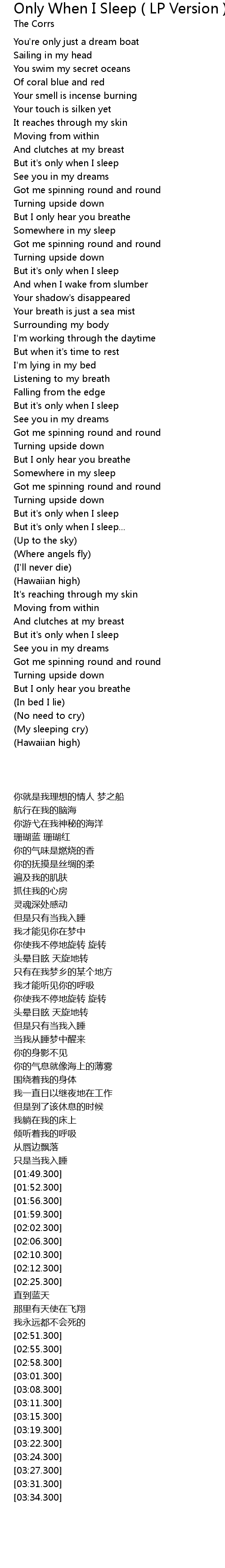 | [02:25.300] | But it' s only when I sleep... |
