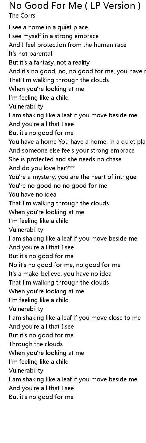 No it's no good for me, no good for me |