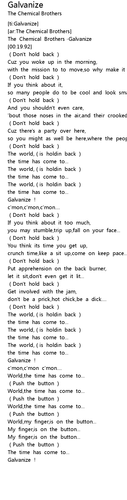 | [00:01.16] | The Chemical Brothers Galvanize |