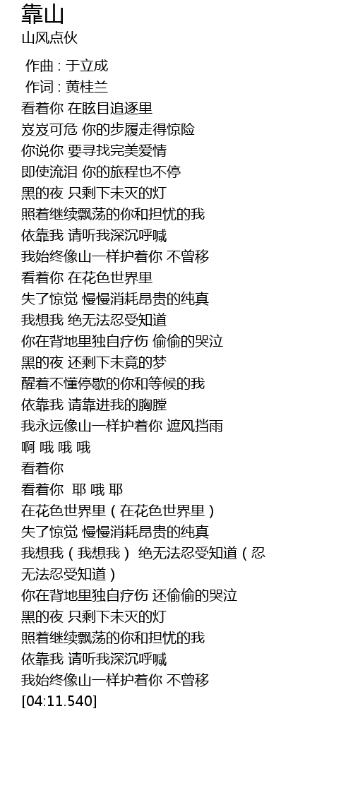 | [03:56.350] | 我始终像山一样护着你 不曾移 |