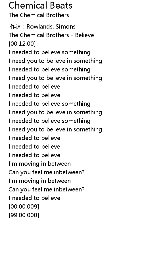 | [00:02.00] | The Chemical Brothers Believe |
