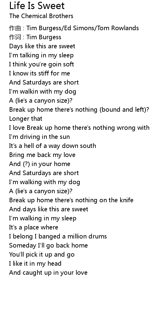 | Song | Life Is Sweet |