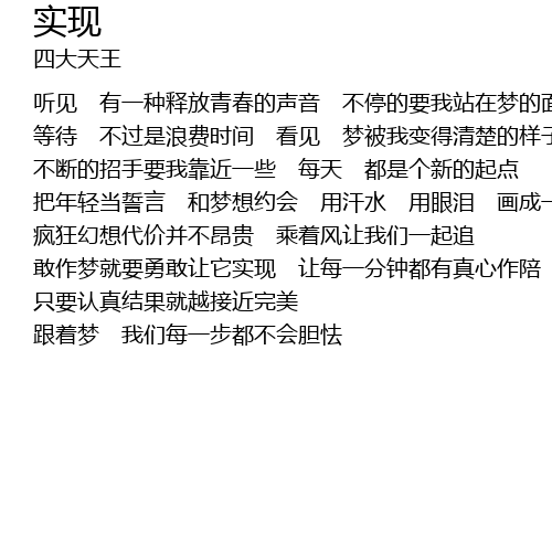 | 把年轻当誓言 和梦想约会 用汗水 用眼泪 画成一个圈 | |