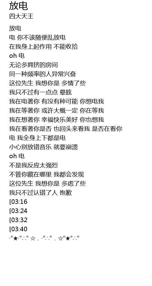 | [03:48][03:16][02:43] | wǒ zài diàn zhe nǐ yǒu méi yǒu zhǒng kě néng nǐ xiǎng diàn wǒ |