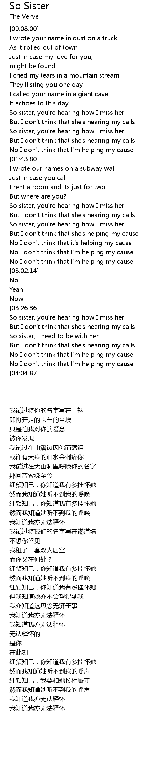 | [03:41.30] | So sister, I need to be with her |
