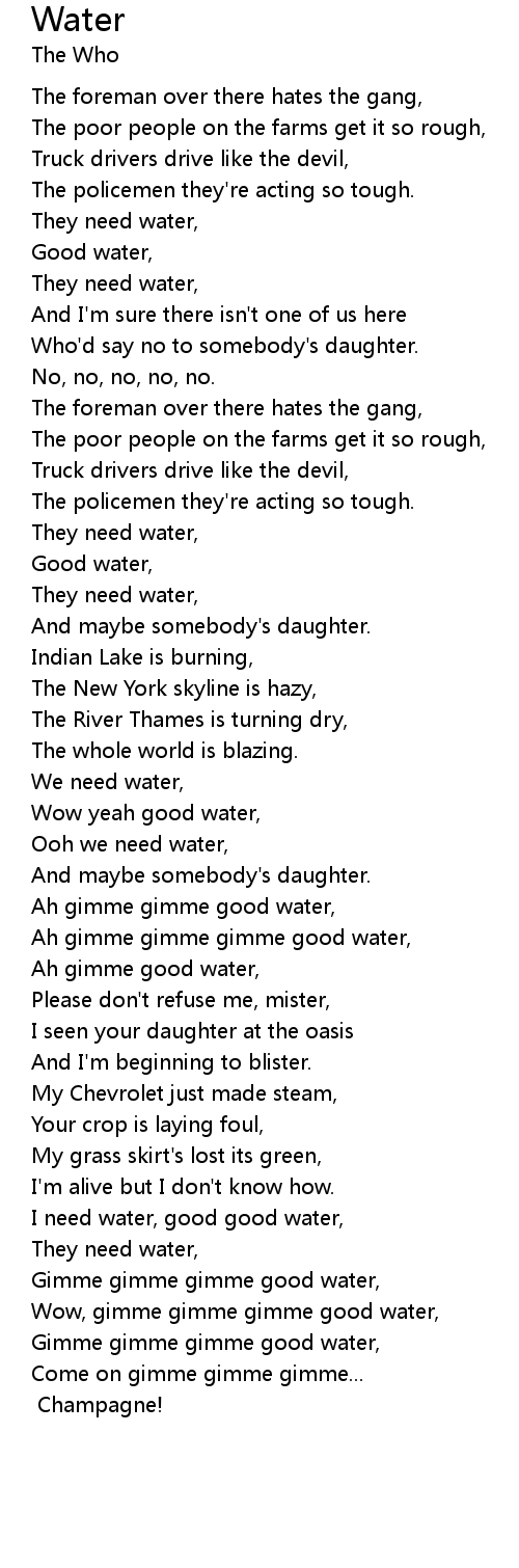 Ah gimme gimme gimme good water,