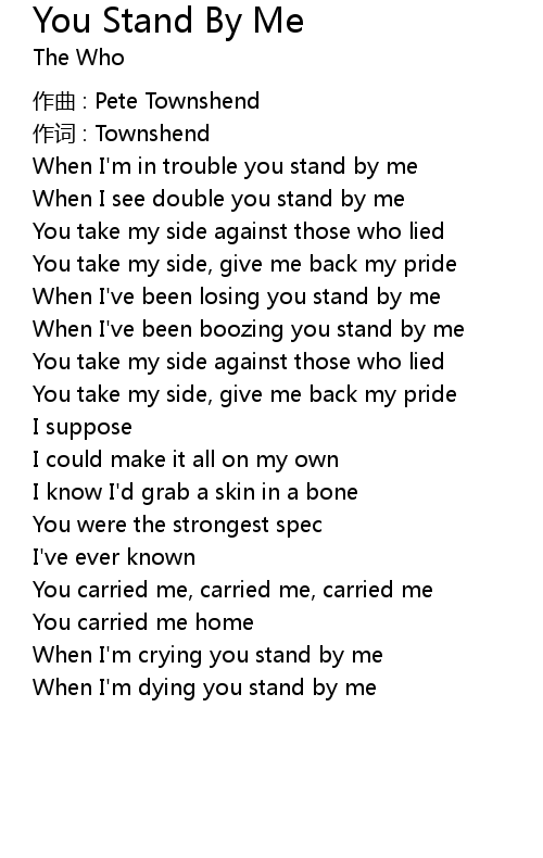 | When I' m crying you stand by me | |