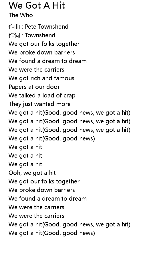 | We got a hit(Good, good news) | |