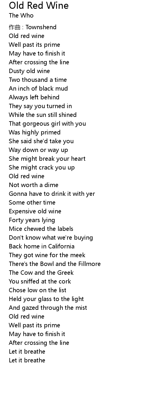 | Song | Old Red Wine |