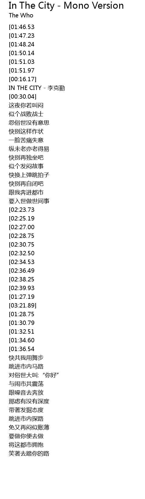 | [02:45.66][01:30.79] | IN THE CITY |