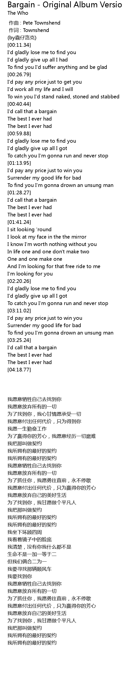 | [00:00.00] | zuo qu : Pete Townshend |