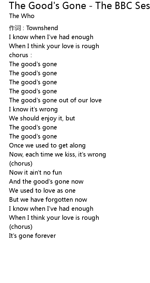 | The good' s gone | |