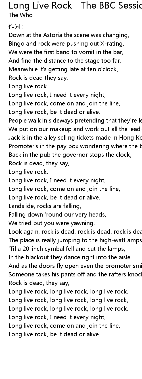 | Long live rock, long live rock, long live rock, | |