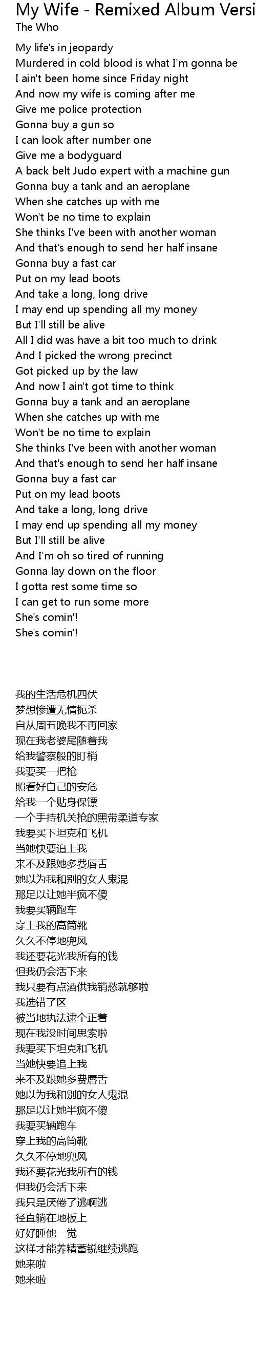 And now my wife is coming after me |