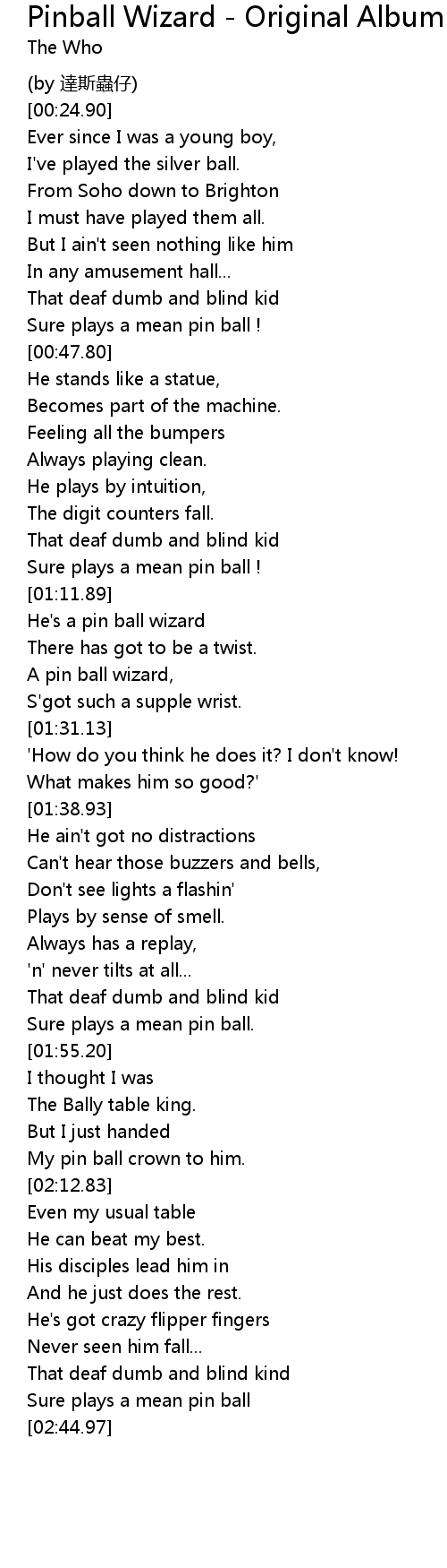 | [01:18.86] | He's a pin ball wizard |