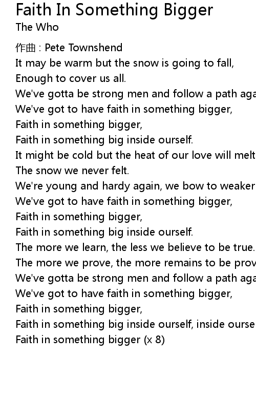 | Faith in something bigger, | |
