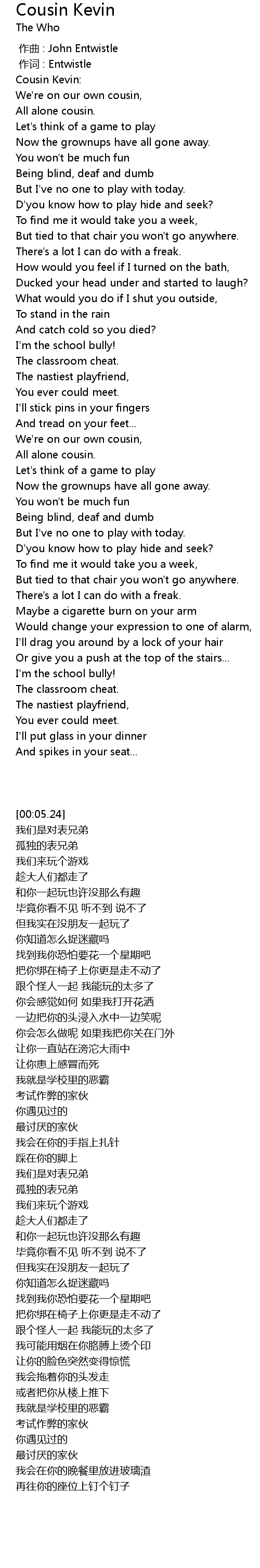 | [00:05.24] | Cousin Kevin: |
