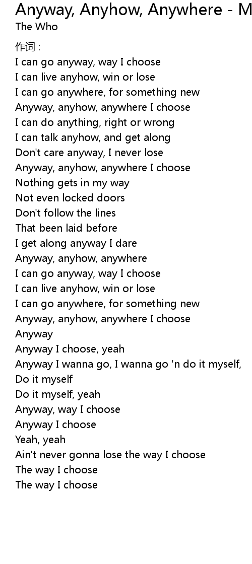 | Anyway I wanna go, I wanna go 'n do it myself, | |