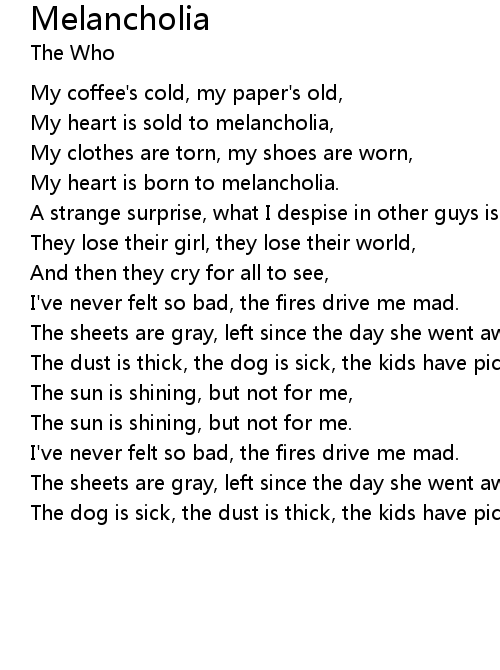 My heart is sold to melancholia, |