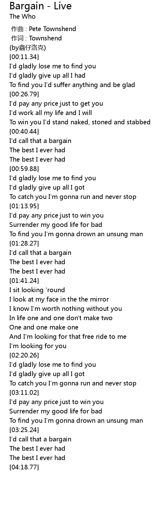 | [00:00.00] | zuo qu : Pete Townshend |