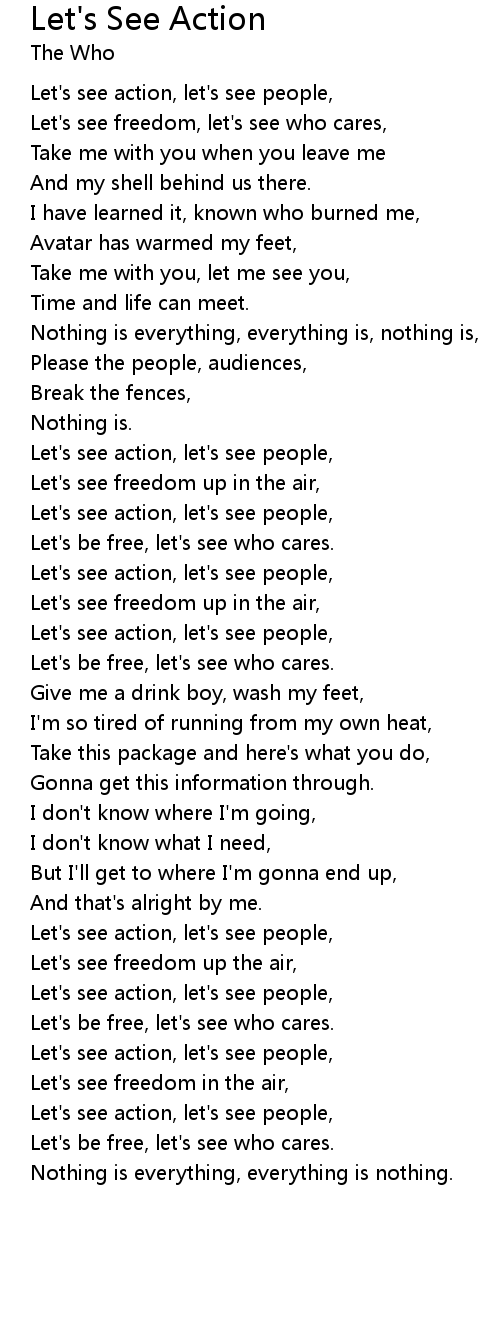 Let's see action, let's see people, |